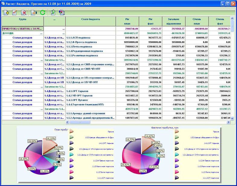 Контур забезпечує планування і контроль виконання бюджетів як для кожного конкретного підрозділу, так і для всього підприємства.