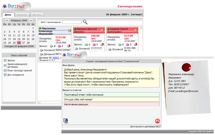 Базовий варіант контуру містить інструменти по отриманню абсолютно будь-якої інформації по клієнту, що зберігається в базі підприємства.