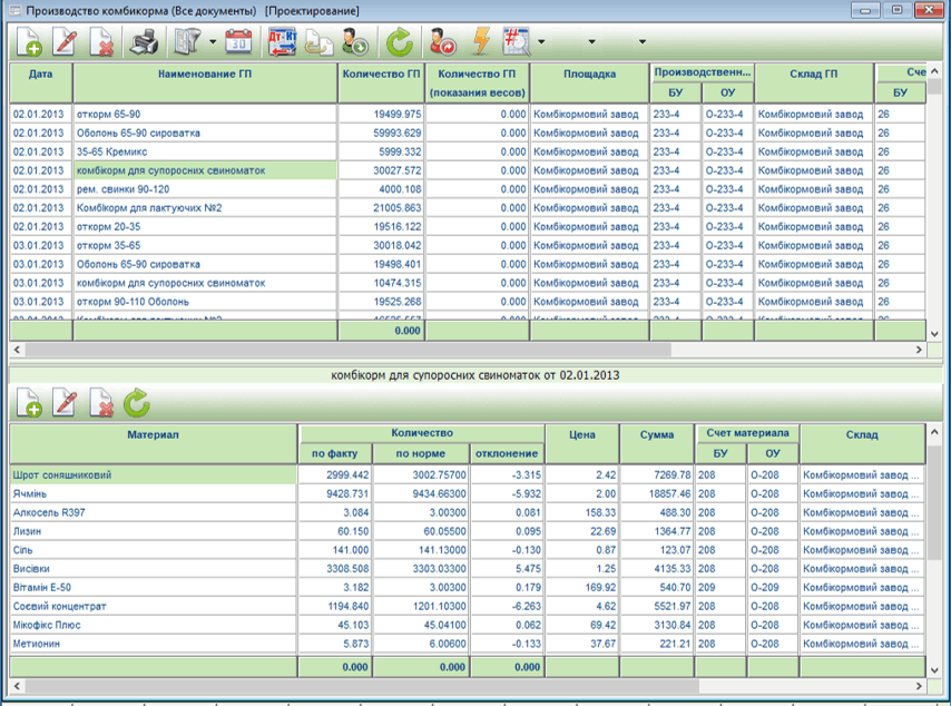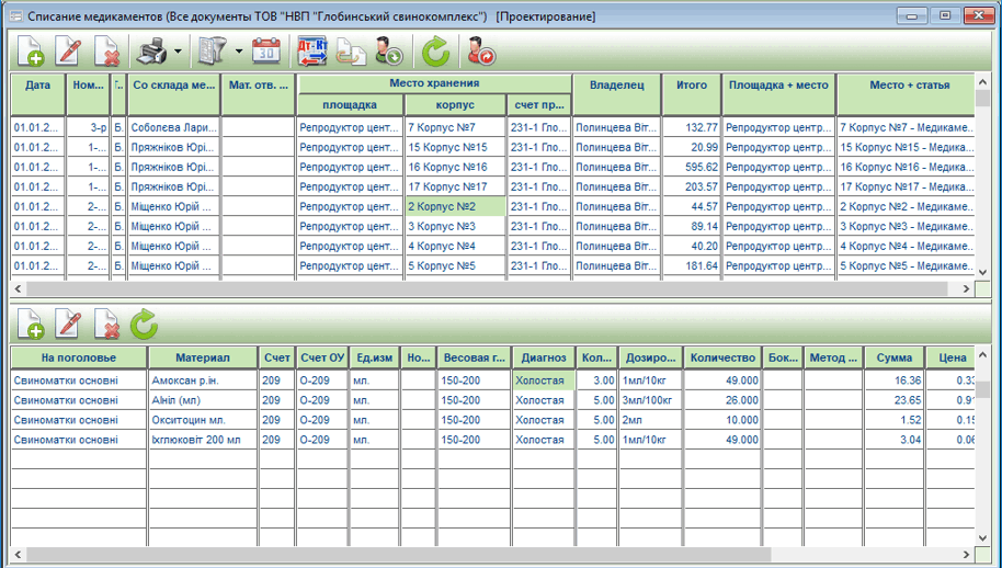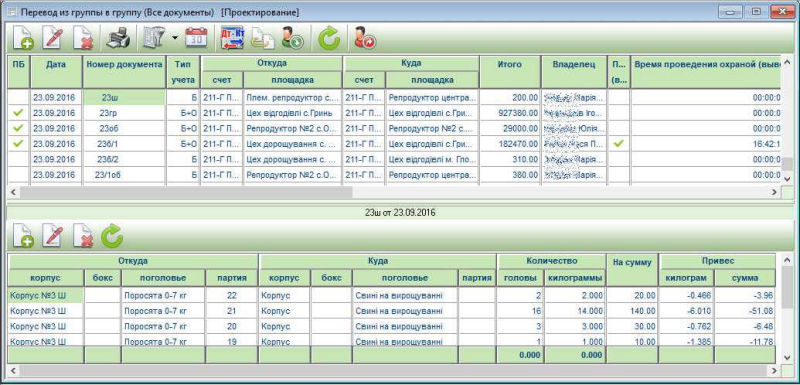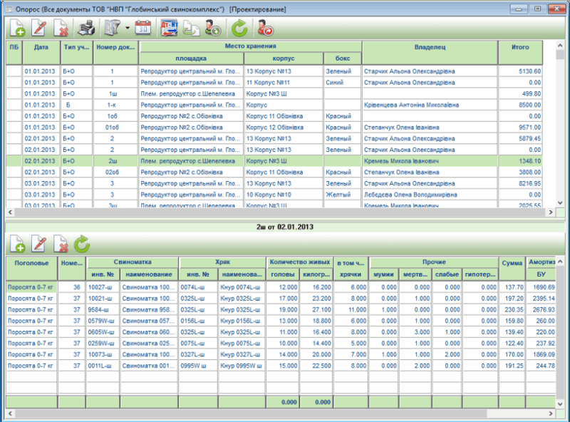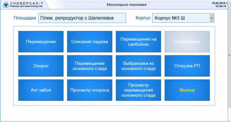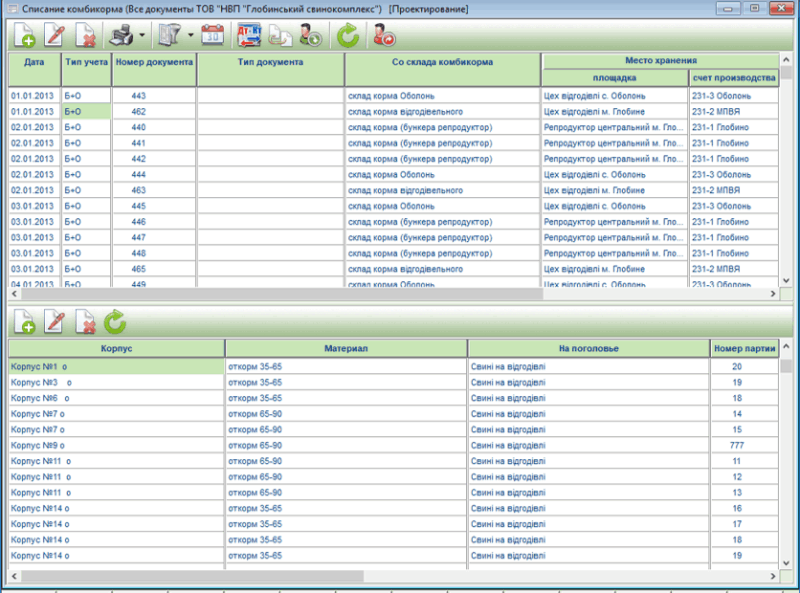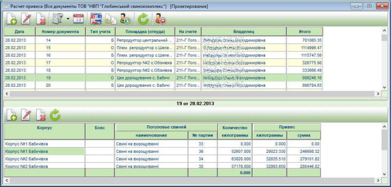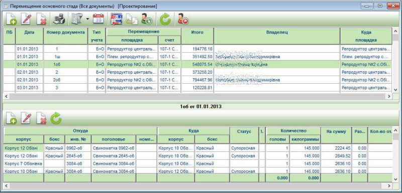 У системі визначається ієрархія виробничих майданчиків підприємства (майданчик/корпуси/бокси), а також враховується розподіл поголів'я з боксів.