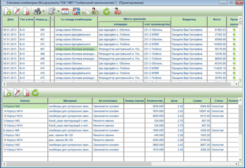 Використовуються різні алгоритми обліку витрат для кнурів, свиноматок, поросят.
